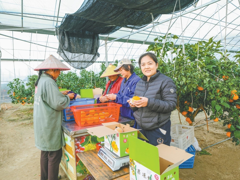 2019年,她又转向大棚柑橘种植,针对江汉平原冬季低温寡照的问题,安装智能补光灯、温控设备,反复测试棚内通风角度对柑橘着色、糖分积累的影响,破解低温落果、果皮发涩等技术难题,让柑橘在腊月成熟上市。如今,果园实现冬季挂果、节假采摘,葡萄园打造成春可赏花、夏秋冬品果的“四季百果园”。