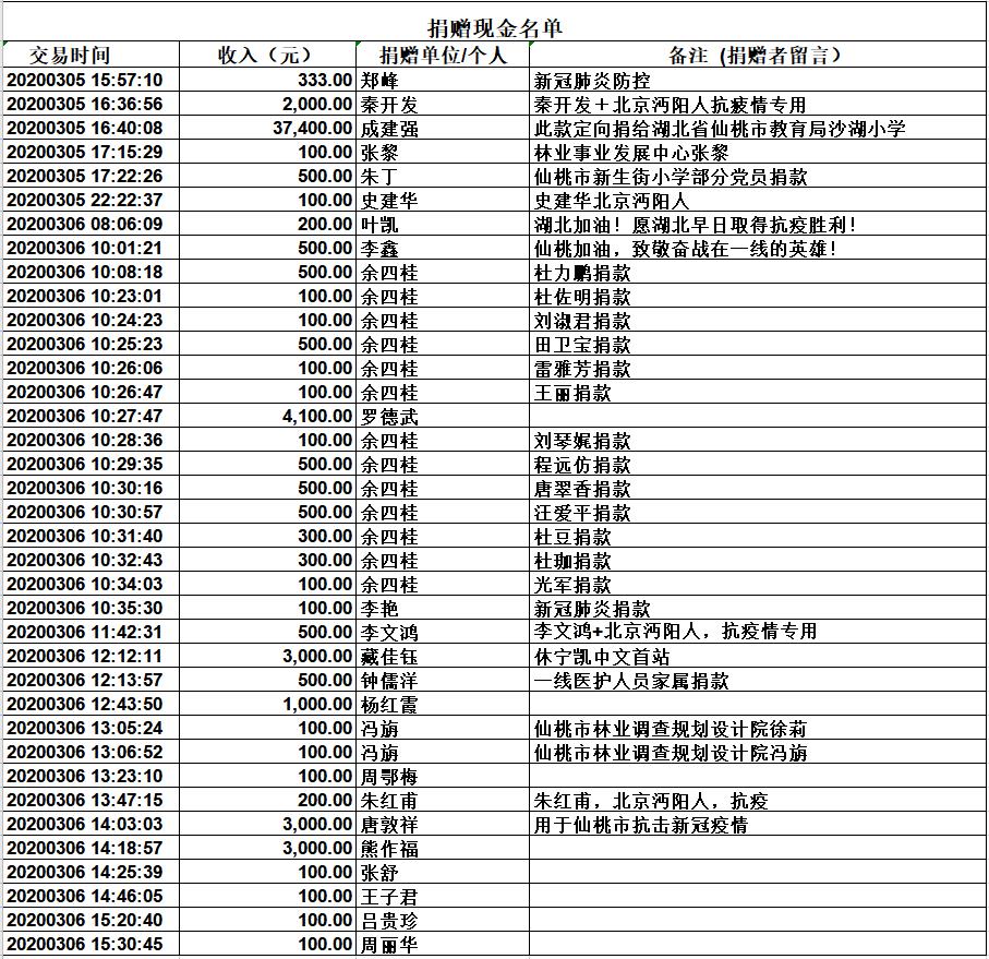 2020年3月6日,共接受社会捐赠款项60933元。具体明细如下: