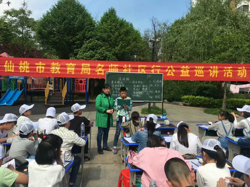 4月22日,市教育局在干河办事处世纪雅园小区举办名师社区行公益巡讲活动,湖北名师、特级教师冯蕾献上了一节《只有一个地球》的精彩课例。市教育局局长蔡涛、副局长刘学文亲临现场听课指导,仙桃小学部分师生、小区居民等百余人参与了活动。