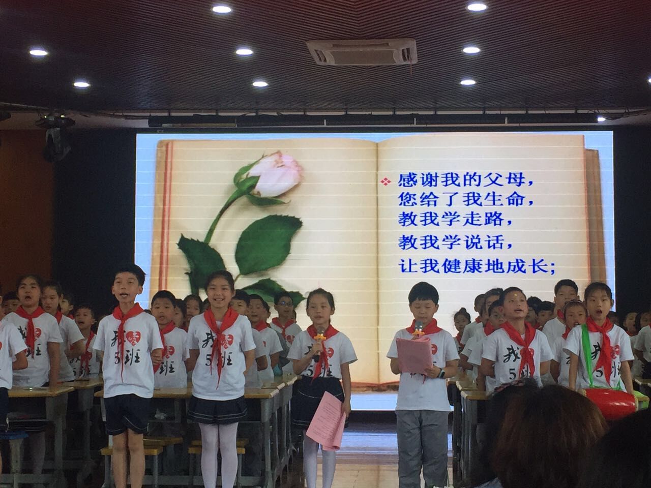 此次活动由三(5)班承办,邀请了全体班主任和60多名家长代表参加。班会活动以“妈妈,我爱你”为主线,分别从“了解母亲”、“赞美母亲”、“心有灵犀”“、“真情告白”等四个环节传递了孩子们对妈妈的心声。班会上,孩子们各抒己怀,有讲述历史上伟大母亲的故事的,有回忆自己与母亲幸福时光的,有以诗歌颂咏伟大母亲的,也有亲手将自制的精美礼品献给妈妈的……