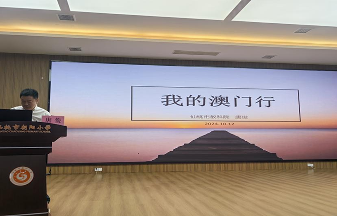 金秋时节桂花开,香飘四溢满城来。为充分展示我市赴澳交流丰硕成果,深度解析澳门教育先进理念与实践经验,为我市教育高质量发展注入新的活力与动能,10月12日上午,仙桃市教育科学研究院在朝阳小学多功能报告厅举办中小学教学教研素养提升培训活动。市教科院领导班子全体成员、全体教研员及兼职教研员、各镇(街道)中心学校教学校长、镇直中小学教学校长,以及城区公民办中小学教学校长(含高中)和公办幼儿园园长等近300人参加了本次活动。本次活动由市教科院肖新国副院长主持。