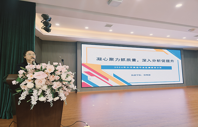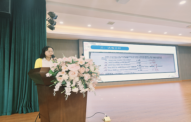 仙源学校小学部的徐梅颖老师首先介绍了仙源学校小学部的英语教学日常活动,接着结合毕业监测数据对学生答题情况进行了质量分析。最后,徐老师结合实际情况,提出了六年级英语教学备考与小升初相衔接的教学思路:一是明确教学目标与定位;二是优化教学内容与方法,整合教材资源;三是制定复习计划,分阶段进行复习。