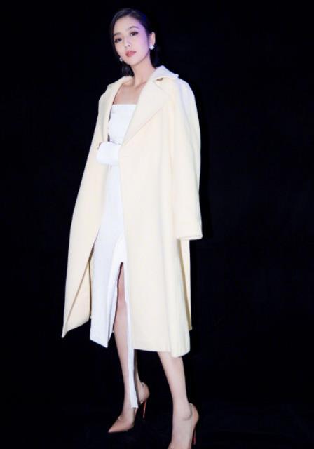 佟丽娅的这款风衣,之前出席星空演讲的时候也用到了呢,内搭是白色抹胸裙,温柔又淑女,为丫丫打call!