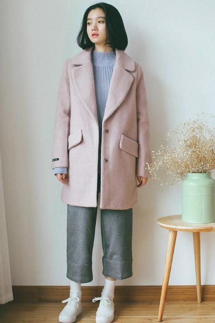与白色,浅卡其色相比,浅粉色也是少女必选呢,两边有口袋的设计增加可爱感,适合小个子的妹子。