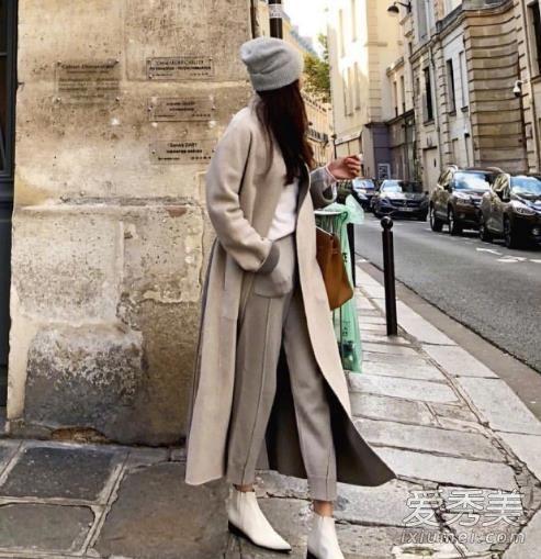 而灰色更有一种高级感。这样的超长款纯色穿搭真的是高级到不行,才不要永远都只是黑白色呢。