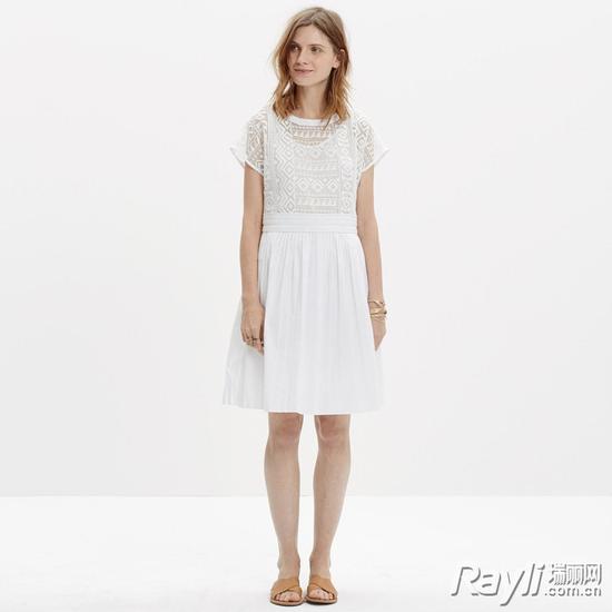 没有这条裙子好像就没经历春夏,选一条最适合你的,搭配平底或者高跟鞋走过一整季。 Madewell 白色蕾丝裙