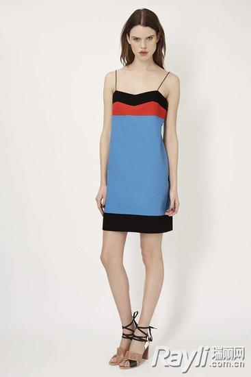 对于那些不是非常正式的派对场合,只要吃吃喝喝玩了一下,你就需要一条活泼的鸡尾酒会裙。 Topshop Unique 拼色吊带裙
