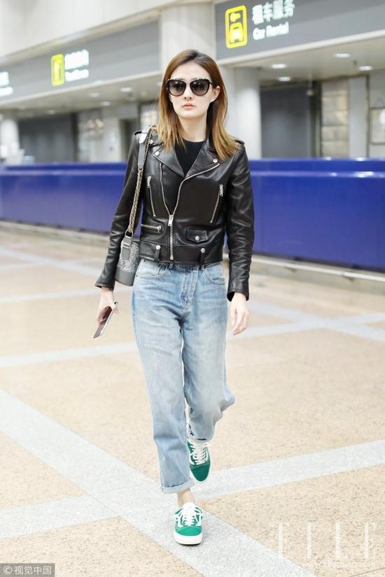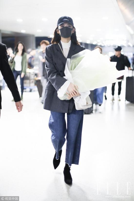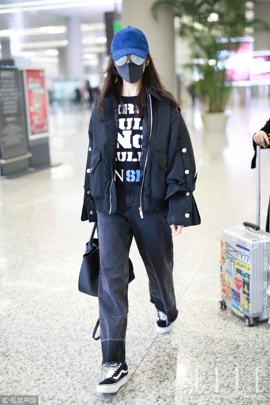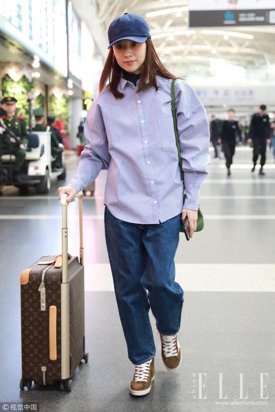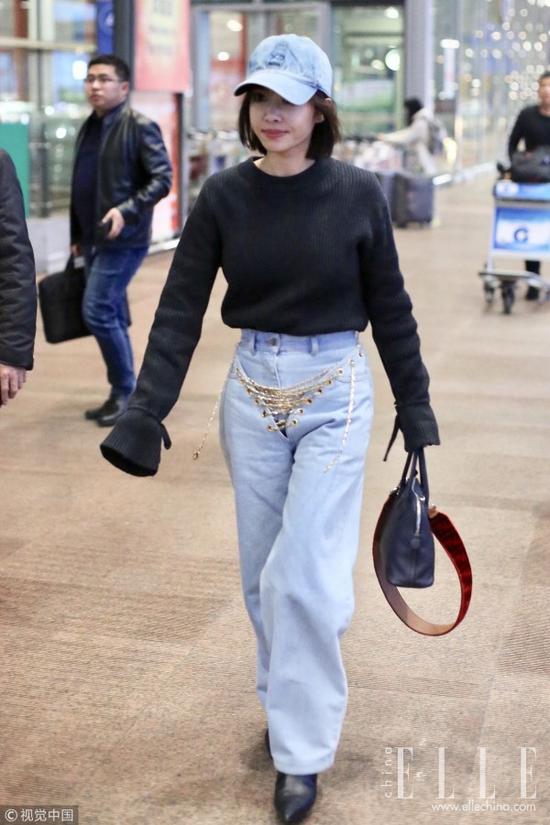 因为Dad Jeans以宽松舒适为主,所以国内女明星坐飞机也很喜欢穿Dad Jeans。古力娜扎有了棒球帽和尖头靴的加持,Dad Jeans穿起来更加酷。