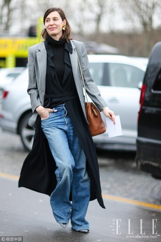 而明星们也在纷纷为Dad Jeans打call,不止日常可穿,就算是穿去活动,气势也完全没有输的。埃琳娜·佩米诺娃(Elena Perminova) 身穿黑色毛呢大衣,内搭千鸟格抹胸衣,下身穿水洗牛仔裤,脚踩尖头高跟鞋,大秀香肩。