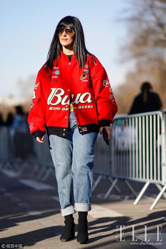 而改良后的Dad Jeans不再仅局限于浅色,深色也备受追捧,对身材或是腿型不自信的女孩纸就可以选偏深色系。在版型上选择裤脚更短的九分裤,冬搭踝靴,夏露脚踝,相当实用。