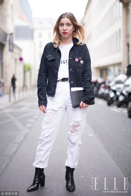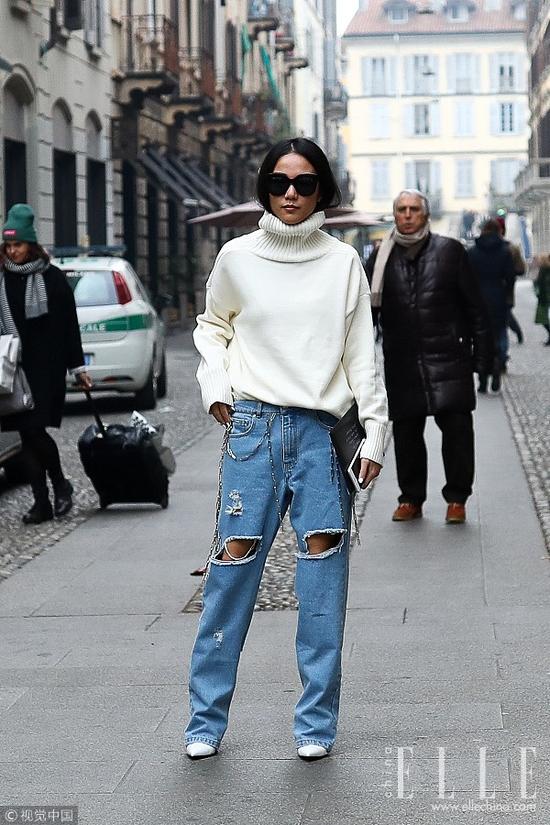 想展现个性的话,一定少不了充满颓废感的破洞元素,破洞的位置越高越显高。