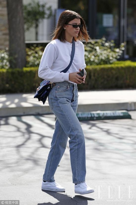 这几年的复古风把经典的Dad Jeans又刮回来,连范冰冰也一改以往“招摇”的造型,身穿Wrangler牛仔背带裤,内搭白色卫衣,脚踩Stella McCartney银色厚底鞋,现身异国街头,休闲与唯美自由切换。