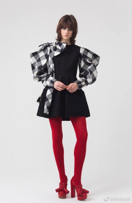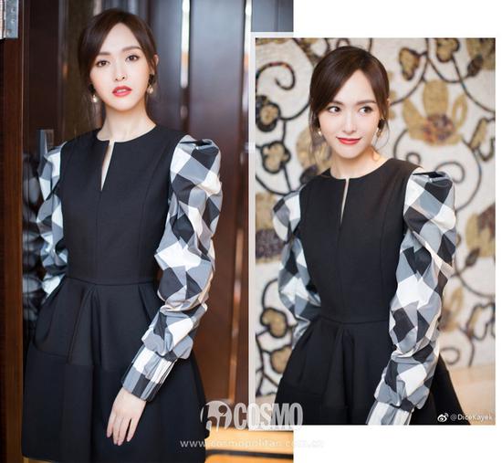 纤细的唐嫣向来驾驭礼服无压力。这件裙子来自Dice Kayek 2018年秋冬系列,黑色收腰的小礼裙完美的衬托出了唐嫣的好身材,黑白灰格纹相间的泡泡袖复古而别具一格。