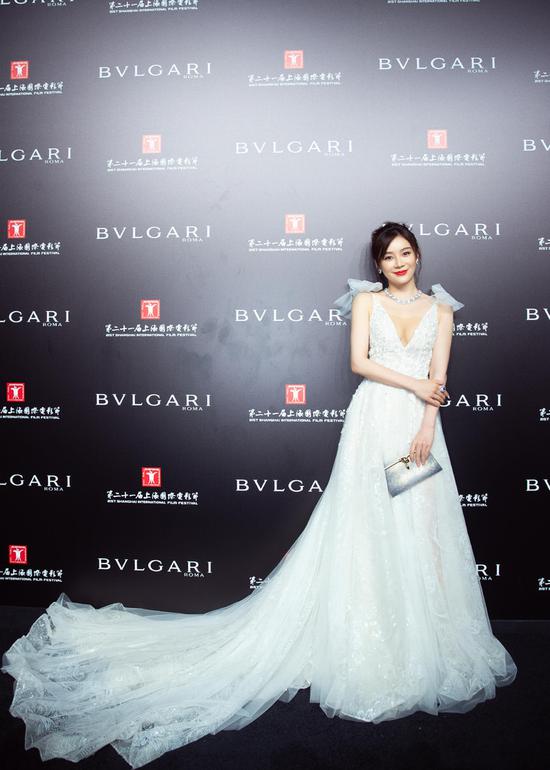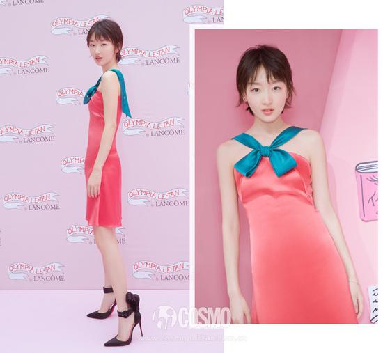 出席上海国际电影节,姗姗选择的是来自MIKAEL D水粉色礼服,携新作《龙虾刑警》灵动亮相。