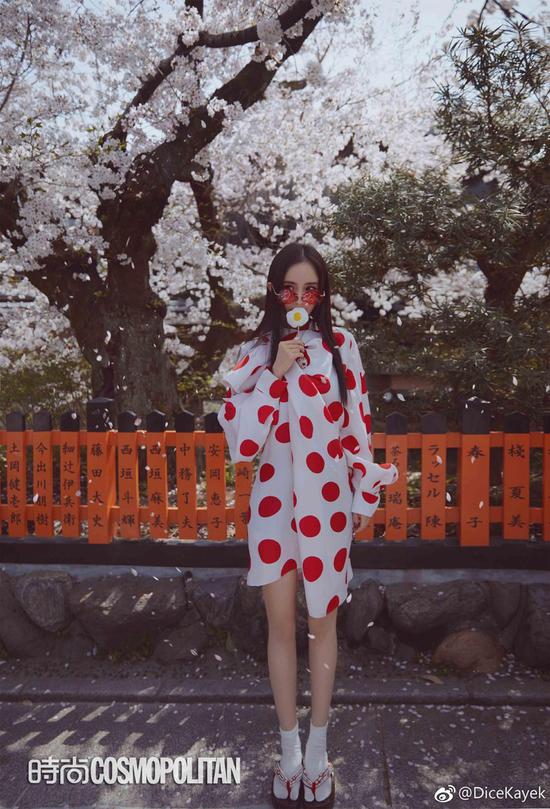 第一次看到真是惊艳!可爱元素的大胆运用结合夸张的廓形,COCO能想到上身上镜后会有多好看,纯度高的配色不论是在阳光下还是镜头前,都能出十佳的惊艳效果!巧的是!在COSMO五月刊大幂幂的特辑中就乖巧的出现过啦,没想到Dice Kayek品牌和日系风相结合,这配合打的也挺稳!