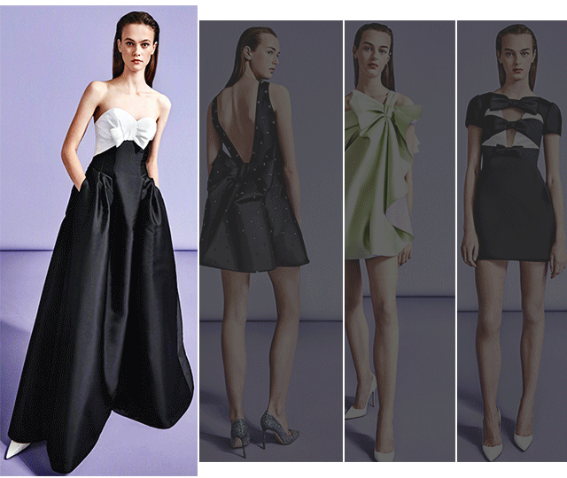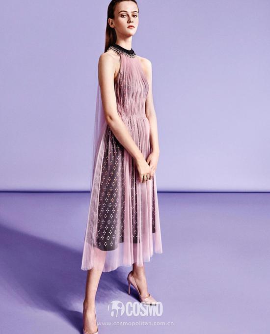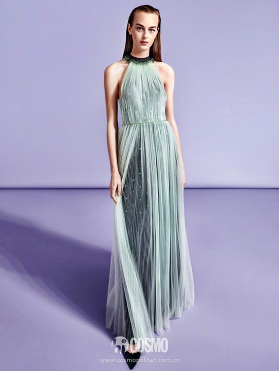 COCO一看到这组图就立马被它所散发的粉色的少女气息给吸引住了,这件礼服未免也太可爱了吧!蜜桃粉和蓝绿色的撞色恰到合适,胸口的蝴蝶结还有一股调皮劲儿。