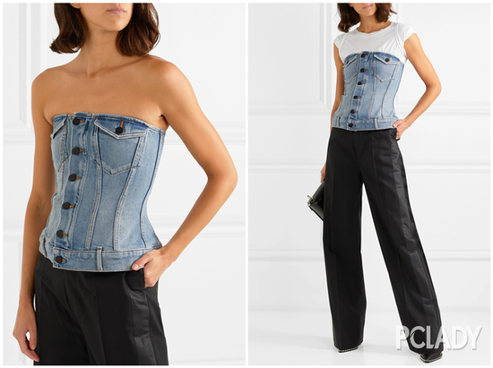 单品以复古水洗牛仔布裁制,挺括的衣身令人联想起迷人的紧身胸衣——此灵感出自内衣的设计手笔不仅是设计师的拿手之作,更让其成为引领内衣外穿潮流的先驱之一。不妨将它外穿于白色 T 恤外。