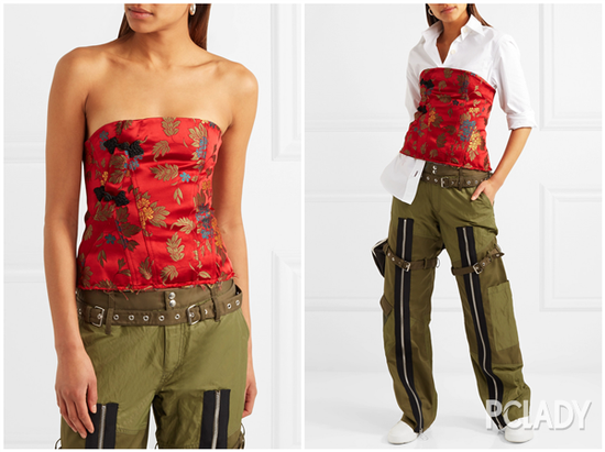 Marta Marques 和 Paulo Almeida 2018 春夏系列的灵感缪斯不是一个人,而是广泛遍布世界、以独立女性为标签的群体——出自其中的这件紧身胸衣就取材自中国传统裙装。单品裁自亮泽的提花面料,并饰有中国艺术风格的花朵和绗缝背面。