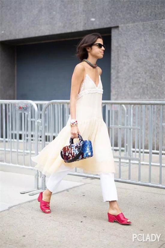 长裙大概是夏日里最能偷懒省事的单品了,出门赶时间的话拎起一件长裙搭配适当的配饰就能基本搞定。但是想要让长裙变的与众不同,不妨在下面搭配一条长裤,微微露出裤脚管,也能给原本相对girlish的长裙增添一些帅气感。