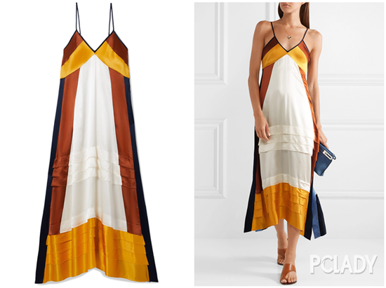 这款 “Sasha” 连衣裙正是其中之一。它采用真丝双绉制成,拼色设计营造出纤细身材的视觉效果,褶裥拼接料和侧面开衩则能凸显出不对称下摆的几何美感。