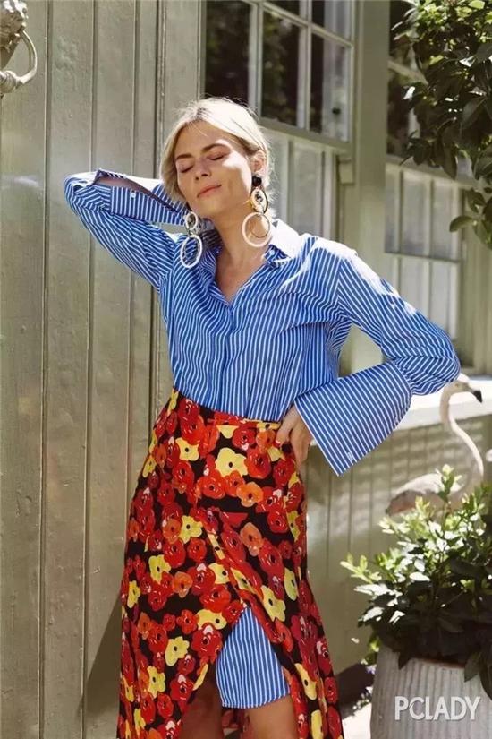 也可以用来搭配裹身半裙,下摆微微露出衬衣边缘,也是一种不错的叠穿方法。