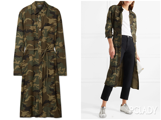 这一长款迷彩印花衬衫以棉质羊绒混纺面料制成,剪裁宽松,配有收束腰部的鞋带式系带。穿它出门时,既可扣上全部纽扣,也可解开几粒将其作为连衣裙穿着。