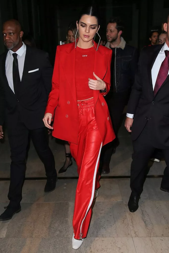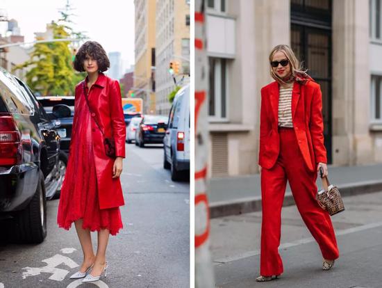饱和度既然高了,危险系数也就大了,虽然很多潮人还是喜欢全身红色穿着吧,但是除了连衣裙,就一定要加入帅气感或运动感才能冲散那份红通通。