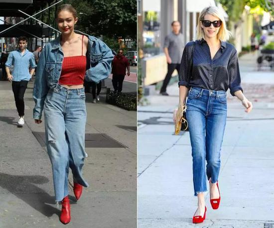 如果觉得没新意,这里给大家的推荐是搞一双小红鞋,首推平底或短靴,完胜小白鞋!