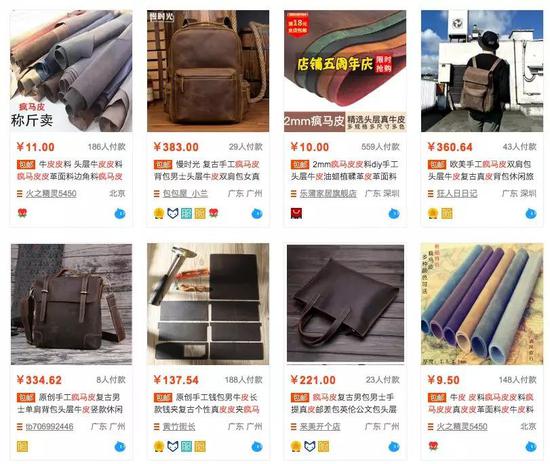 而某宝上常见的所谓“疯马皮”手工包,有相当部分都是人造革制作。