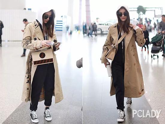 运动街头风盛行当下,风衣+运动套装+挎包的搭配备受明星青睐。以活泼的方式展现出了风衣的另一面。