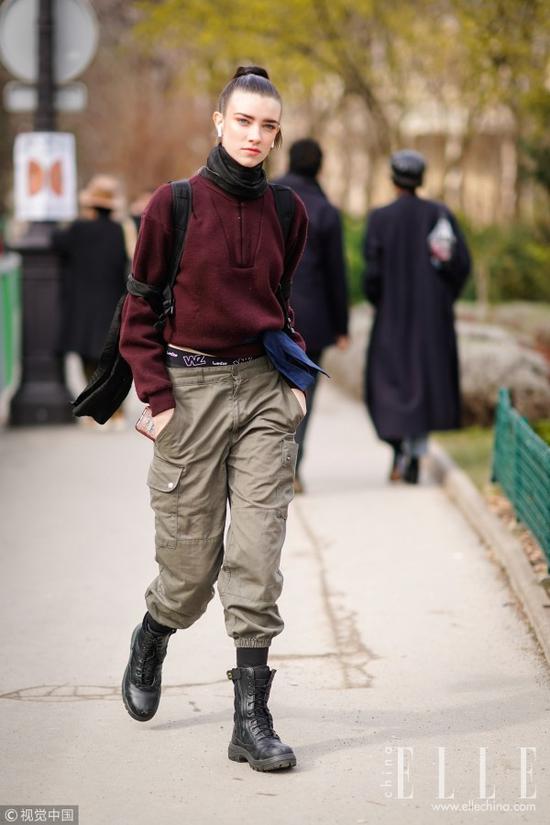 工装裤+登山靴的搭配中性十足,与卫衣搭配在一起,时髦帅气不输男生!