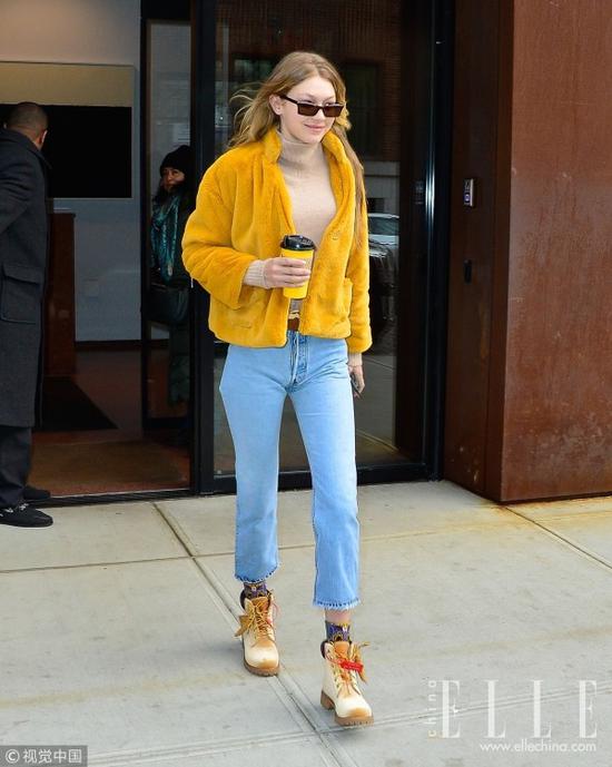 卫衣与牛仔裤的穿搭经典又舒服,整个造型有百搭牛仔裤来贯穿,卫衣的选择就随意很多,登山靴的融入让造型立马帅气了起来,比如Gigi这身造型,白色登山靴与白色卫衣上下呼应,既带来帅气感又不会影响整个造型的休闲随意。