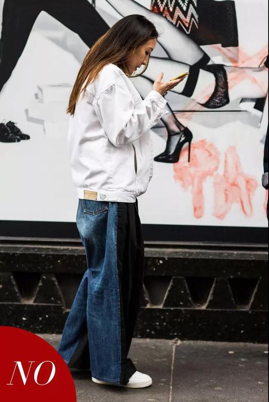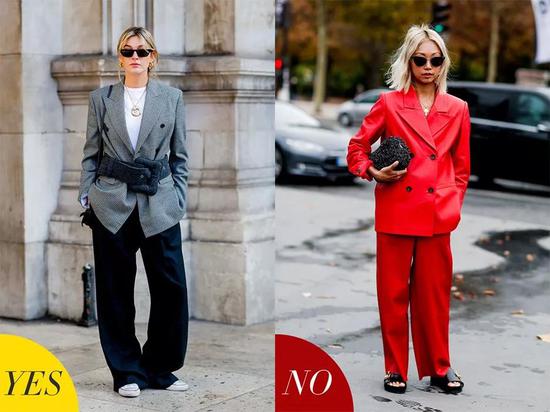 阔腿裤本身就是一件有膨胀感的单品,如果上半身本来体积就比较大,搭配的阔腿裤就要更注意宽度了,甚至只在裤腿做微喇处理即可。