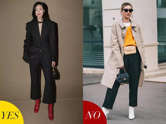 最后要说的是短靴,因为秋冬是最适合穿短靴的季节了。搭配短靴的时候,除了选择九分裤阔腿裤以外,你也可以选择更短一点的七分长度。不过需要注意的是,全身不要分成太多个色块,不然身体截成三段肯定会显矮。