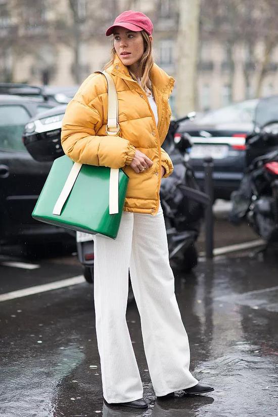 这个秋冬还有个好消息——羽绒服成为了潮流单品,再也不用怕温度和风度不能兼得了。用短款羽绒夹克搭配阔腿裤,就能很时髦。