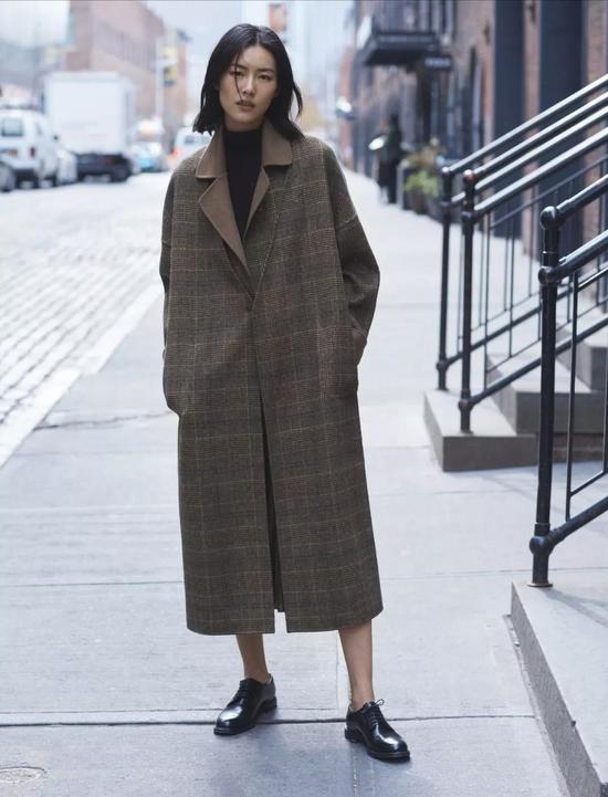 当然,在秋冬最能穿出质感的还是各种长款大衣,刘雯也为我们示范了不少这样的造型,充满了层次感 。