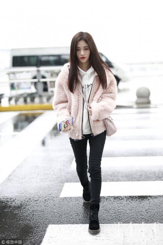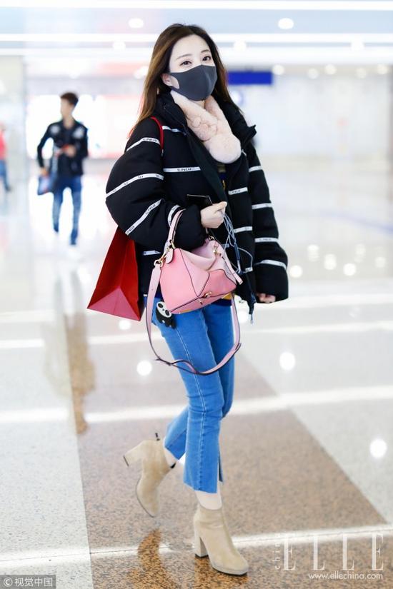 “宇博”Chiara Ferragni本身金色长发和白皮肤,搭粉色外套非常适合,这种丝绒材质的羽绒服要比其他材质更优雅,加上字母点缀就很年轻街头感。下装尽量简单,厚底小白鞋配黑色紧身裤简简单单,还显高显腿长。