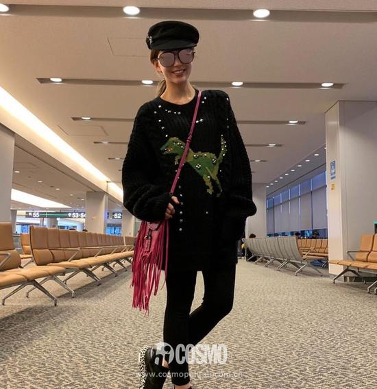 如果觉得all black太乏味,印花来帮忙!小恐龙、古典刺绣成为造型加分项,轻轻松松打破了黑色的沉闷。