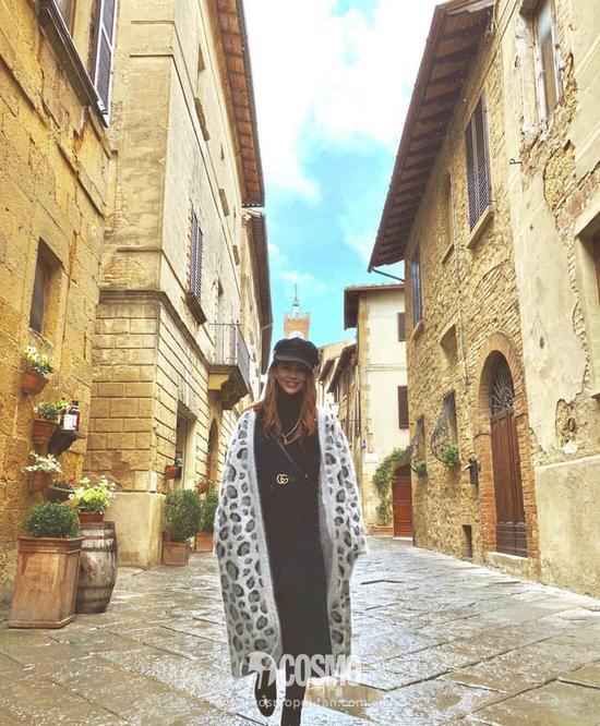 豹纹元素已经足够时髦抢眼,配上黑色套裙内敛高级,腰带勾勒出腰身女人味十足。