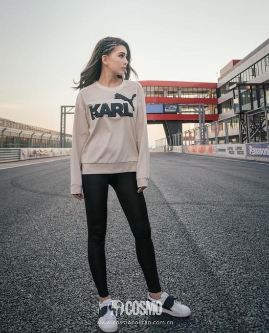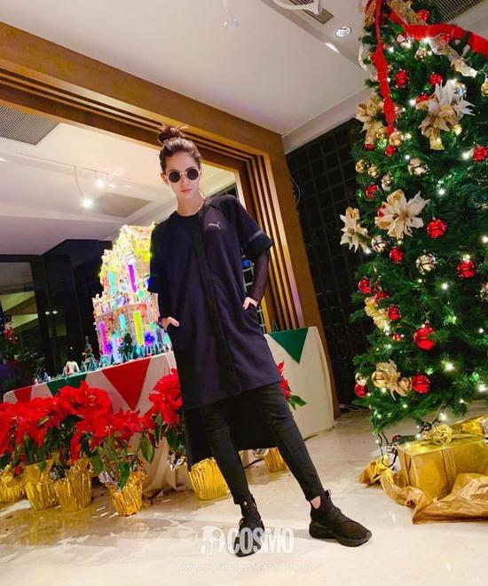 Puma这件运动连衣裙真的一眼集中COCO的心,昆凌选择内搭黑色渔网上衣,混搭风时髦有看点。