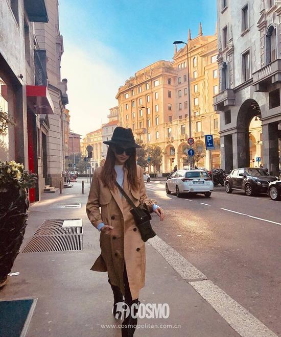 黑色毡帽上的格纹装饰使整个帽子都精致起来,难怪昆凌爱不释手呢。