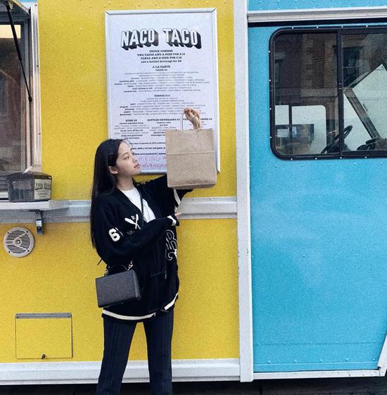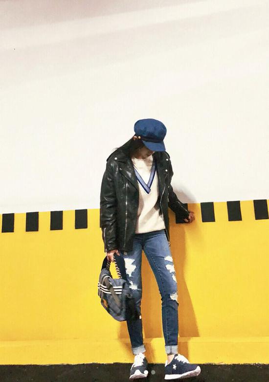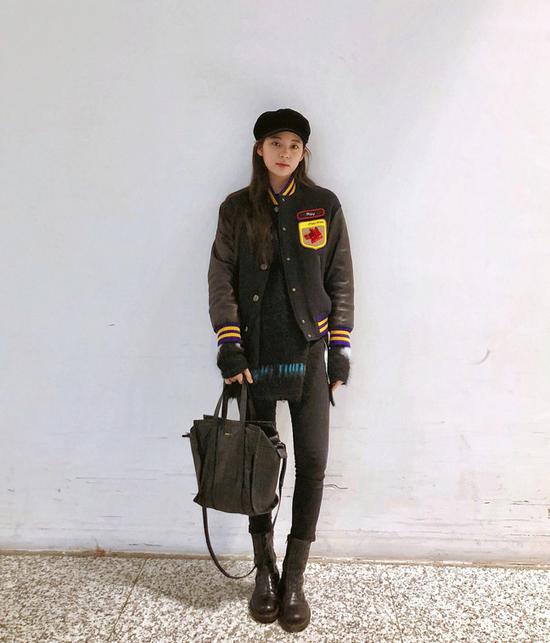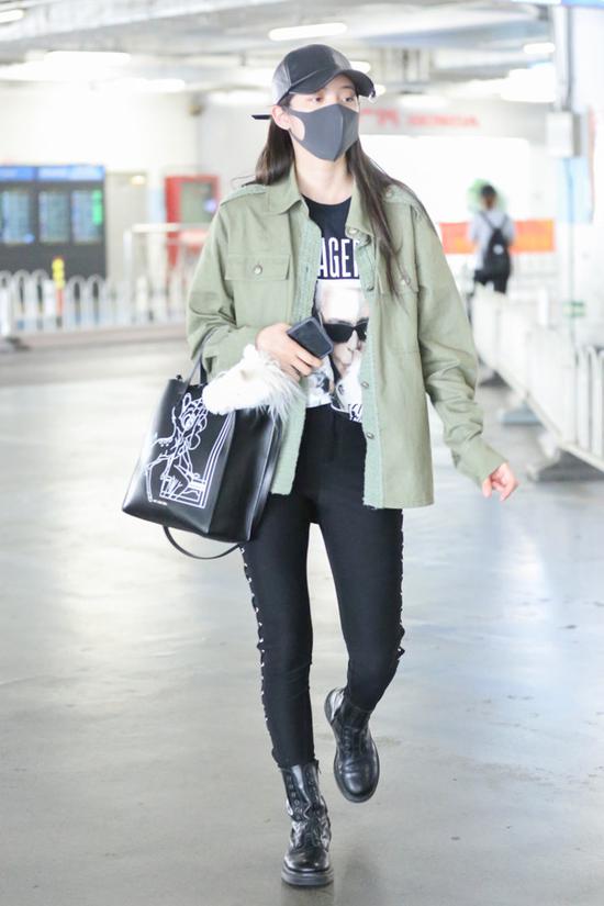 欧阳娜娜的脸蛋很甜美,于是她私下的打扮最喜欢让衣服更“酷”一点,正好跟她的“甜美”有一种对比的感觉,最常见的就是工装外套+裤装的率性穿搭。