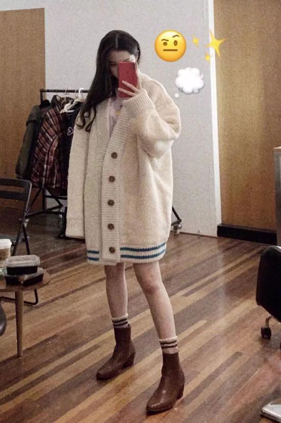 一到春天,很多女生会喜欢穿各种各样软软萌萌的毛衣。如果不知道什么毛衣显瘦的话,像欧阳娜娜这样选一件超大的开衫毛衣就很好看。