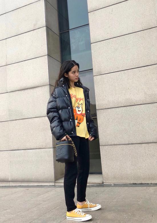 另一件欧阳娜娜最常穿的就是黑色羽绒服了。潮流每年都在变,羽绒服的版型也越做越精良,但只要选好了一件黑色羽绒服,就是你衣橱的经典款。