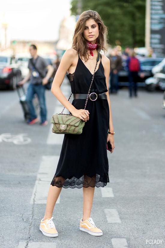 明确的腰线也是显瘦的杀手锏,无论是连衣裙还是半身裙,利用小设计或腰带将腰线升高从而优化比例,这样一来腿“变长”了自然更加显瘦。