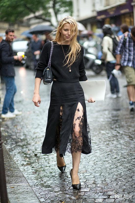 相比起死板的裙型,若隐若现的开叉裙既不会显得过于复杂,又能够修饰掉腿部不流畅的线条,隐约地展示腿部,同样也能起到优化比例的作用。