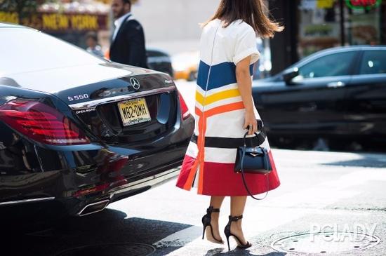 素色的深色裙装简约又显瘦,想要来点颜色不妨穿上印花裙装。其中最显瘦的单品,当然是竖纹的裙装,细长的条纹能够形成集中的视觉效果,显瘦威力不可忽视。