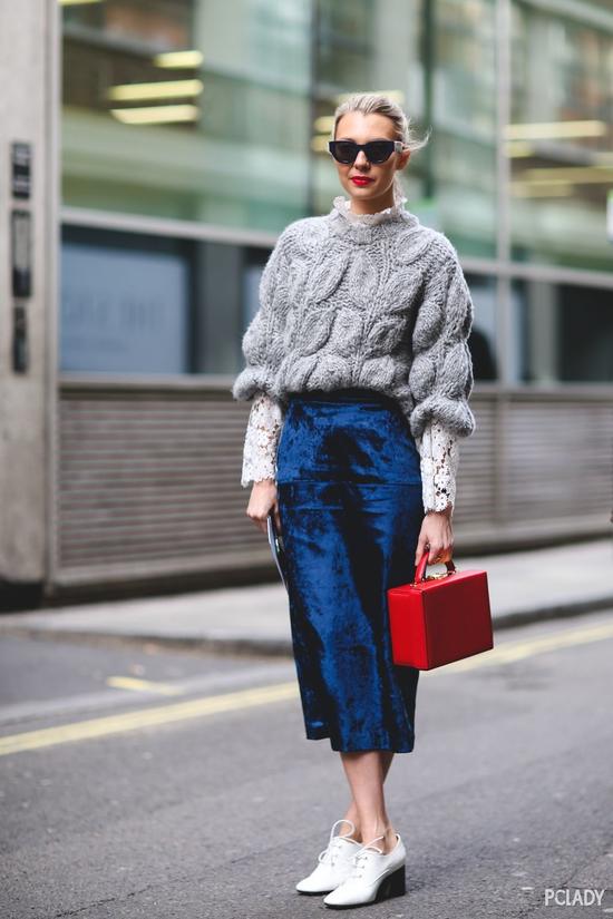 同样的道理,带着华丽光泽感的丝绒面料穿不好也会一秒变胖。