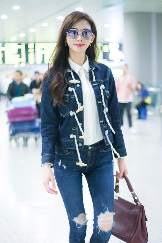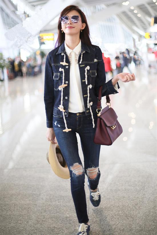 日前,林志玲身着清新简约私服现身机场。从整体造型上看,深蓝色的水洗牛仔服搭配同色系的破洞牛仔裤,一身蓝色的牛仔穿扮可以说是十分休闲有型。看似搭配简单、朴素无华,可实际上却也诠释出了满满的时尚韵味。
