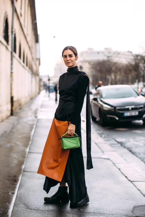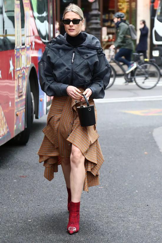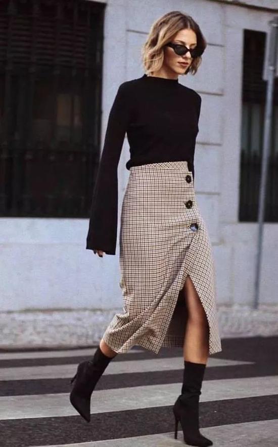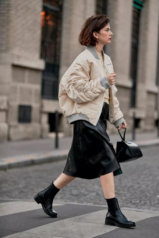 及踝裙搭配靴子,其心跳指数其实是看鞋子与裙边留的距离。